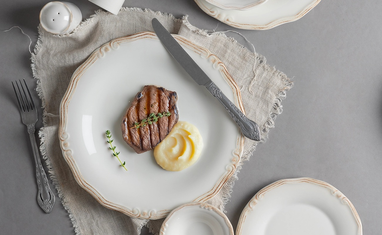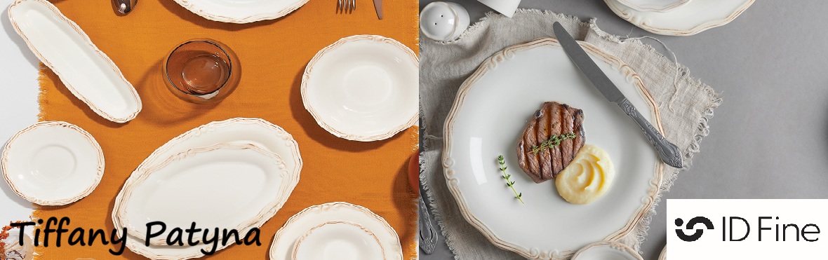 Linia Tiffany Patyna to nowa seria porcelany w naszym sklepie wyprodukowana przez tureckiego producenta ID Fine. Linia klasyczna z pięknym wzorem na talerzu, który to wzór jest pokryty ręcznie malowaną lekką patyną dająca efekt postarzenia. Porcelana iście z dawnych epok jest szalenie elegancka i dystyngowana. Przy tym ma rozbudowane elementy zarówno talerzy do dań głównych ale także przystawek, miseczki i półmiski oraz zastawę do kawy i herbaty. To idealny wybór dla miejsc i osób, które cenią spójność, rzemiosło i subtelny luksus widoczny w detalach.