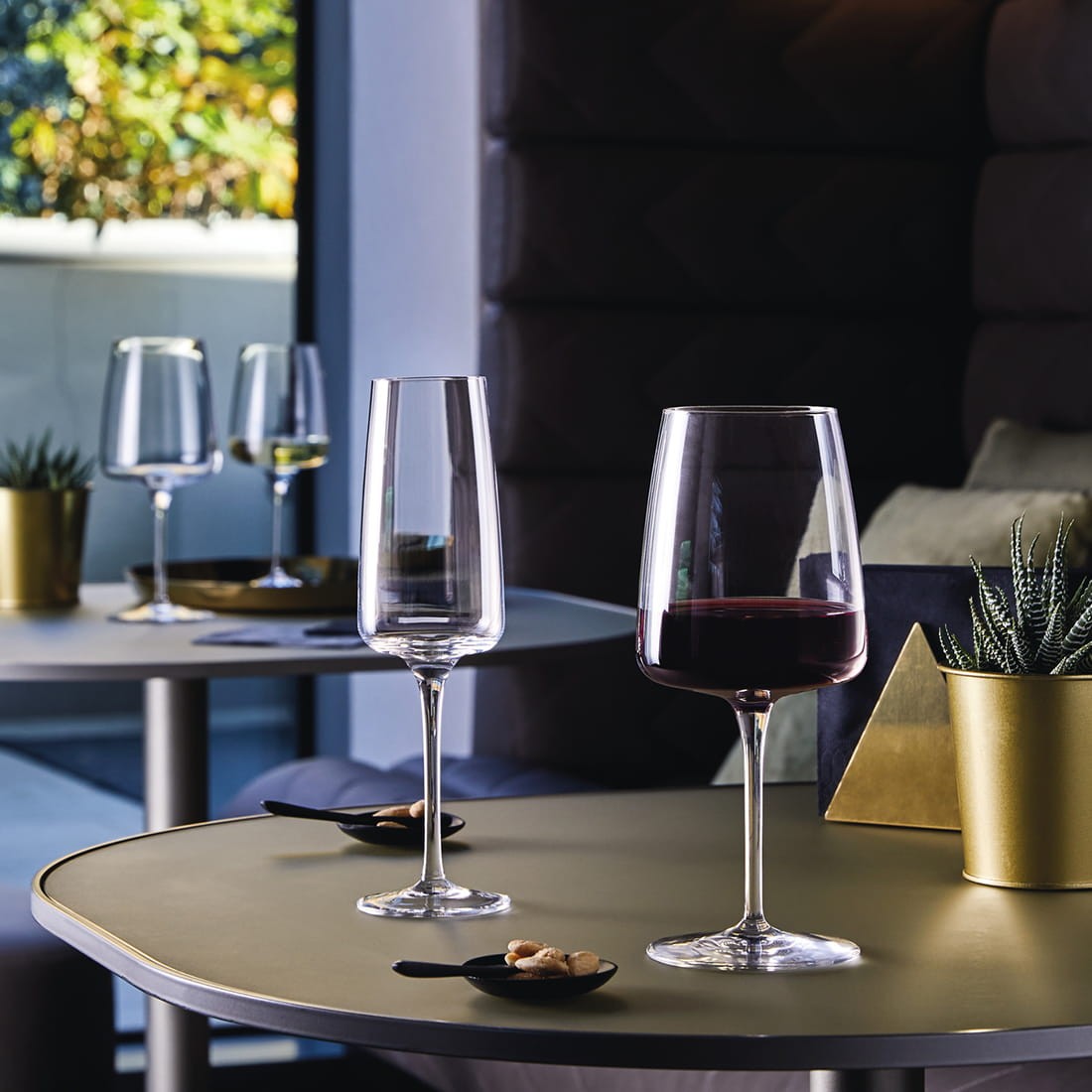 Seria szkła  Nexo od Bormiolli - włoskiego producenta szkła -  została zaprojektowana specjalnie do serwowania win białych czerwonych oraz do wody. Cechą charakterystyczną tej serii jest kwadratowe dno. Zestaw został wykonany z najwyższej jakości bezołowiowego szkła kryształowego, co przekłada się na doskonałą przejrzystość i estetykę produktu.