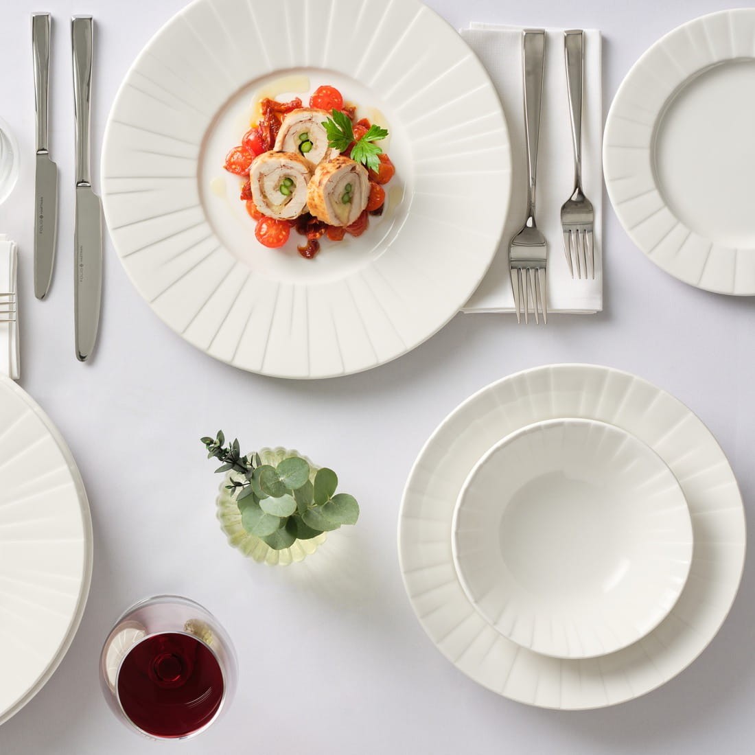 Alina to nowa linia porcelany brytyjskiego producenta porcelany Steelite. Produkowana jest w unikatowy sposób w kolorze delikatnego écru i ma bardzo nietypowe żłobienie uzyskane już na etapie produkcji. Fason łączy dwie silne i uzupełniające się aktualnie bardzo poszukiwane trendy tj. prostotę, liniowość i powściągliwość japońskiego wzornictwa w połączeniu z łatwym, przystępnym i swobodnym stylem, który ucieleśnia skandynawski styl życia.