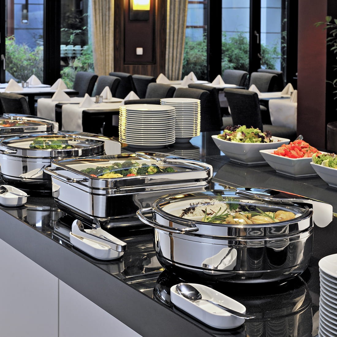 W naszej bogatej ofercie asortymentu stołowego znajdują się również rozwiązania na bufet. Oferujemy niemieckiej produkcji podgrzewacze do potraw elektryczne lub z grzałkami indukcyjnymi zarówno w formacie 1/1 GN jak i w innych.