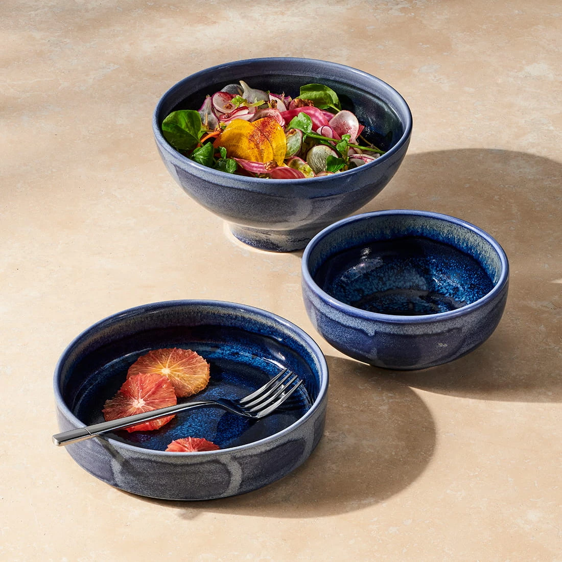 Aurora Vesuvius Lapis kolekcja misek sztaplowalnych i typu Tulip w błękitno granatowym kolorze. Wszystkie miski maja dożywotnią gwarancję na wyszczerbienia. Kolekcje tworzą miski, filiżanki i dzbanek do herbaty. Miska Tulip do zupy i ramenu 14 cm. Pakowana po 6 sztuk.