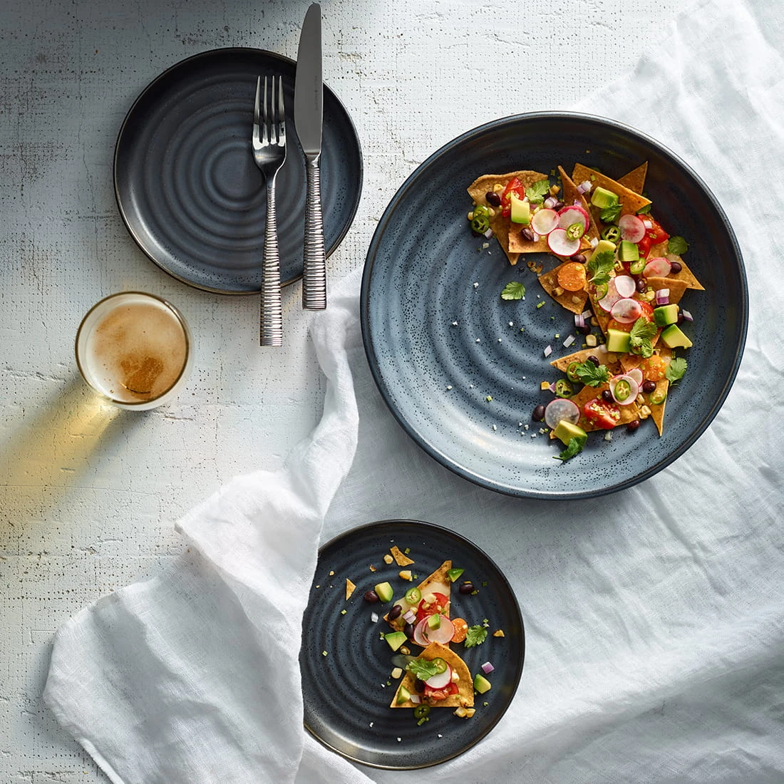 Szeroki asortyment serii Storm w skład którego wchodzą wytłaczane talerze, miski, miseczki i akcesoria daje linię nie tylko pełną, ale i unikalną. Neutralny, reaktywny kolor glazury i wyjątkowe wykończenie powodują, że żadne dwa elementy tej zaprojektowanej w Australii porcelany nie będą dokładnie takie same. Również intensywność koloru każdego naczynia będzie się nieco różnić. Każdy talerz czy miska będą stanowić doskonałe tło dla podawanych potraw. Naczynia tej linii mogą być dowolnie mieszane z drugą wersją kolorystyczną porcelany o nazwie Pier. Talerz Pakowany po 6 sztuk. Średnica 267 mm.
