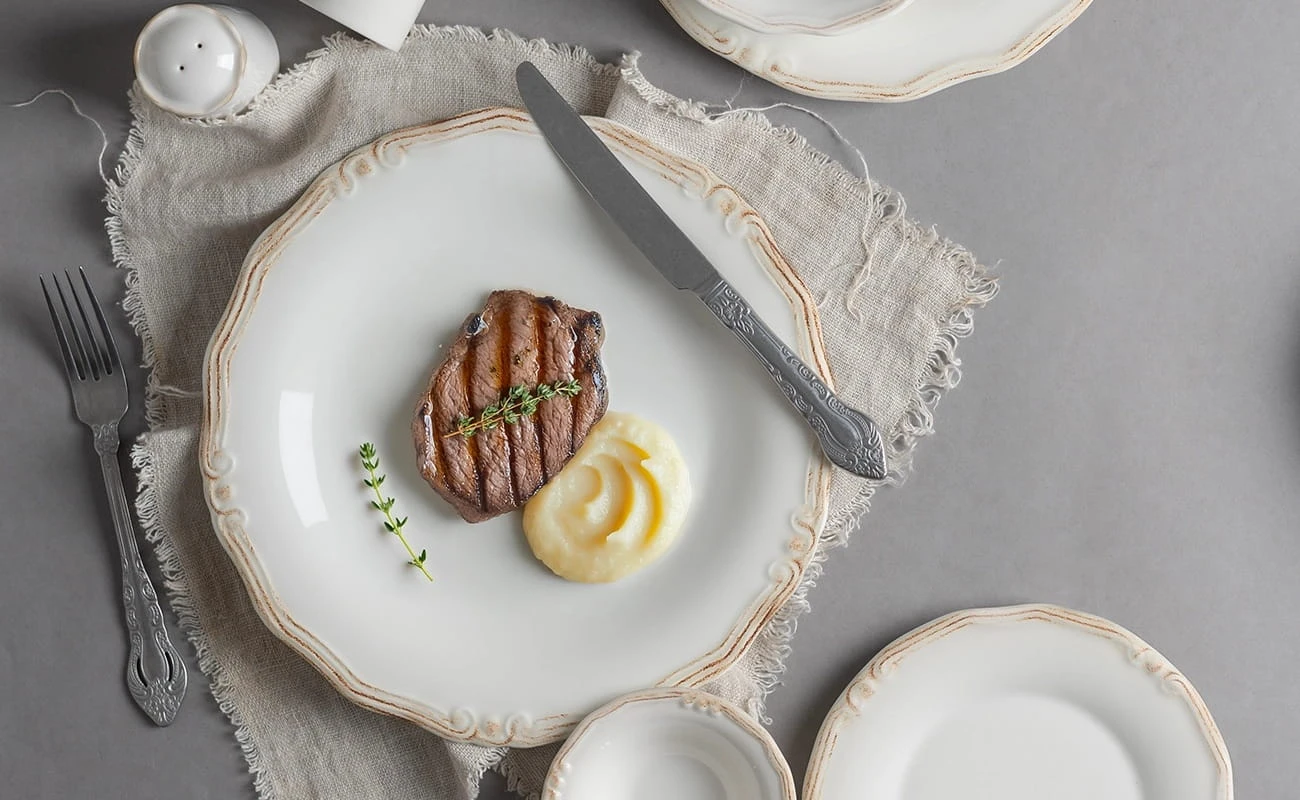 Linia Tiffany Patyna to nowa seria porcelany tureckiego producenta ID Fine. Linia klasyczna z pięknym wzorem na talerzu, który to wzór jest pokryty ręcznie malowaną lekką patyną dająca efekt postarzenia. Porcelana iście z dawnych epok jest szalenie elegancka i dystyngowana. Przy tym ma rozbudowane elementy zarówno talerzy do dań głównych ale także przystawek, miseczki i półmiski oraz zastawę do kawy i herbaty. To idealny wybór dla miejsc i osób, które cenią spójność, rzemiosło i subtelny luksus widoczny w detalach.